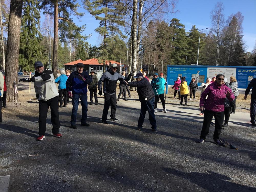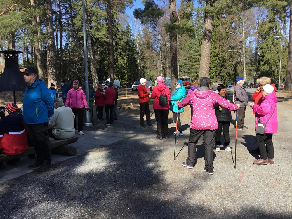 Ensin lämmiteltiin vanhan kaavan mukaan ja sitten lenkkeiltiin, kuka mitenkin pitkän matkan halusi. Lopuksi nautittiin makkaraa mehun kera. Mukana oli yhteensä 50 yhdistyksen jäsentä.